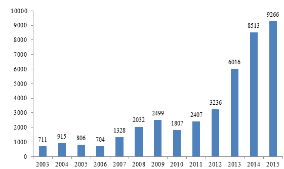 Số lượng báo cáo nhận được từ năm 2003 - 2015 được trình bày trong Hình 1.