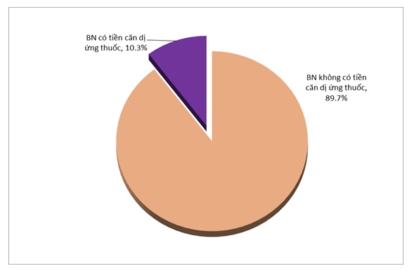 Số báo cáo ADR trên bệnh nhân có tiền căn dị ứng thuốc là 32 báo cáo chiếm tỷ lệ 10,3%, giảm so với năm 2017 (53 báo cáo). Điều này thể hiện sự thận trọng của nhân viên y tế đối với những bệnh nhân có tiền căn dị ứng thuốc nên tỷ lệ xảy ra ADR trên nhóm bệnh nhân này giảm so với năm 2017.