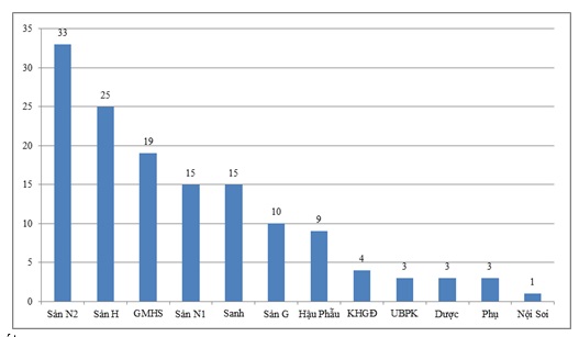 Số lượng báo cáo ADR từ khoa Sản N2 cao nhất với 33 báo cáo chiếm tỷ lệ 23,6%, tiếp theo là khoa Sản H với 25 báo cáo chiếm tỷ lệ 17,9%, khoa PTGMHS là 19 báo cáo chiếm tỷ lệ 13,6%. Sản H và PTGMHS có số lượng báo cáo tăng gấp 2 lần so với cùng kỳ 2018. Đây là những khoa rất tích cực trong công tác theo dõi và báo cáo ADR góp phần đánh giá lợi ích, nguy cơ của thuốc, tăng cường sử dụng thuốc an toàn, hợp lý và hiệu quả.