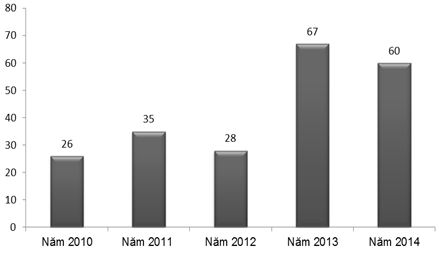 Nhận xét: Đối tượng báo cáo ADR chủ yếu là Bác sĩ với 47 báo cáo chiếm tỷ lệ 78.3%, có tăng so với năm 2013 (59.5%), tiếp theo là Dược sĩ với 10 báo cáo chiếm tỷ lệ 16.7%, Nữ hộ sinh với 3 báo cáo chiếm tỷ lệ 5%