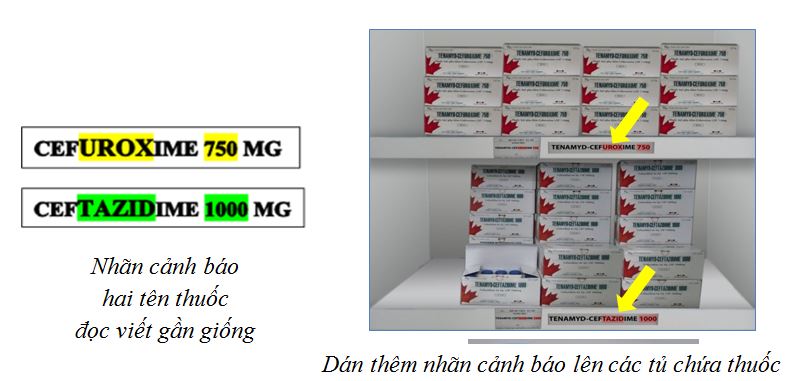 - Tùy vào điều kiện và đặc điểm cấp phát thuốc, mỗi khoa có thể áp dụng một trong số các biện pháp chống nhầm lẫn được nêu bên trên để giúp phân biệt các thuốc nhìn gần giống nhau và/ hoặc đọc viết gần giống nhau.