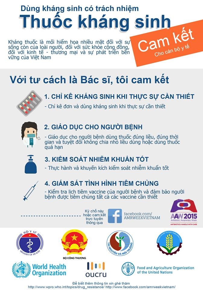 Bộ y tế đã triển khai kế hoạch tuyên truyền vận động về việc phòng chống đề kháng kháng sinh trong toàn ngành y tế với nhiều khẩu hiệu, poster, tờ rơi, bản cam kết ... Vậy còn chờ gì nữa chúng ta, những cán bộ y tế có trách nhiệm, có lương tâm, có nhiệt huyết hãy cùng quyết tâm: “Sử dụng kháng sinh có trách nhiệm”