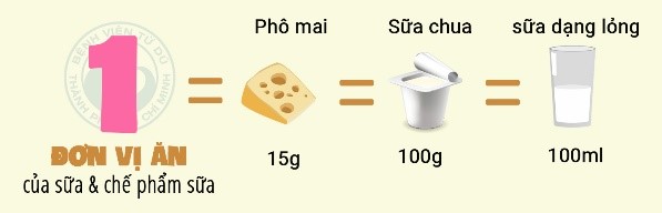 1 đơn vị ăn của sữa và chế phẩm sữa cung cấp 100mg can xi, tương đương: