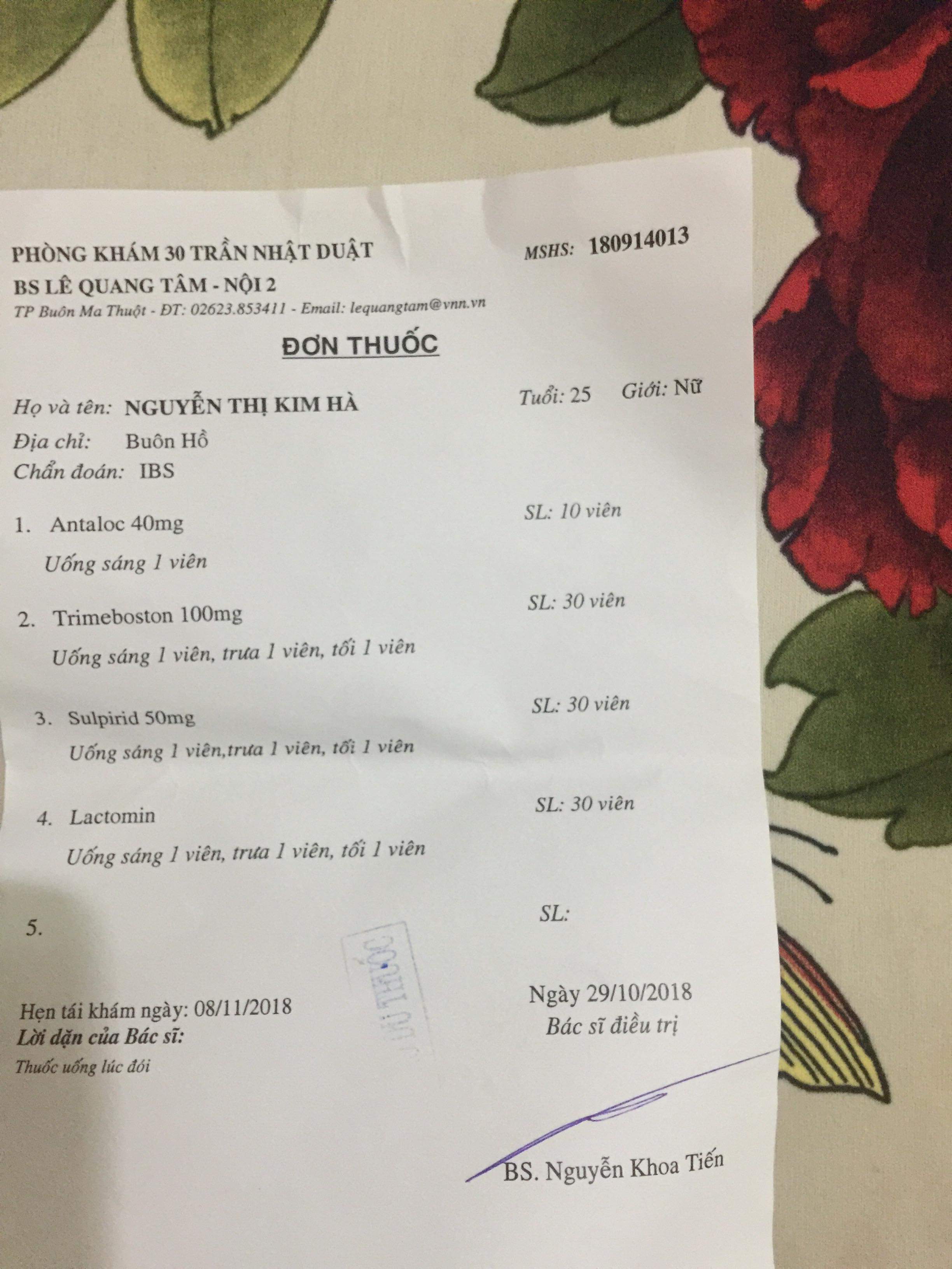 Chào bác sĩ, Em năm nay 25 tuổi, em đi khám và bác sĩ chuẩn đoán em bị viêm dạ dạy và kê cho em đơn thuốc sau: Reprat 40mg (7 viên), Duspatalin 200mg (14 viên), Gesmix Cap (21 viên) SucRATE gel 1g (21 viên) , Kuplevotin 25mg (14 viên). Sau khi em uống hết đơn thuốc, e thấy không đỡ nên e được kê thêm đơn: Antaloc 40mg (10 viên); Trimeboston 100mg (30 viên); Sulpirid 50mg (30 viên); lactomin (30 viên). Sau đó em đi khám và siêu âm thì em mới biết em có bầu được 3 tuần. Bác sĩ cho em hỏi, em đã uống từng đó thuốc có ảnh hưởng đến con em ko. Con em có bị dị tật hay ảnh hưởng đến sự phát triển của thai nhi không. Em giờ đã ngưng thuốc. Nhưng em cảm thấy rất lo và đây là lần đầu em mang thai. Xin bác sĩ tư vấn cho em. Em cảm ơn!