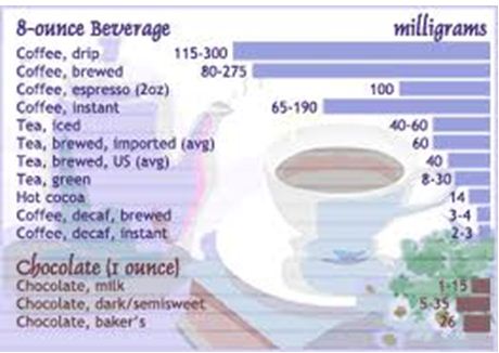 Số lượng caffein trong thức ăn và đồ uống rất khác nhau.