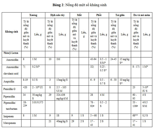 Mục tiêu của bất kỳ chế độ liều kháng sinh nào là đạt được nồng độ có hiệu quả tại vị trí nhiễm trùng, nhờ vậy có thể loại trừ vi khuẩn gây bệnh. Có nhiều yếu tố cần được xem xét khi lựa chọn loại kháng sinh cũng như liều lượng (ví dụ: loại vi khuẩn, mức độ nhạy cảm của vi khuẩn, sự phát triển đề kháng, và tác dụng có hại của thuốc). Tuy nhiên, vị trí nhiễm trùng và sự phân phối của kháng sinh ở dạng tự do, không liên kết đến vị trí đó cũng quan trọng không kém. Quá trình phân phối của thuốc đến vị trí tác động là cầu nối giữa dược động học và dược lực học. Vì phần lớn các nhiễm khuẩn xảy ra ở mô, sự phân phối thuốc đến mô và nồng độ thuốc đạt được tại vị trí mục tiêu đã trở thành những yếu tố cơ bản quyết định hiệu quả của kháng sinh. Mục tiêu của bài báo này là cung cấp những dữ liệu về nồng độ tại mô của kháng sinh - điều này liên quan tới sự phân phối thuốc tại mô, và mối liên hệ giữa nồng độ tại mô với kết cuộc trị liệu.