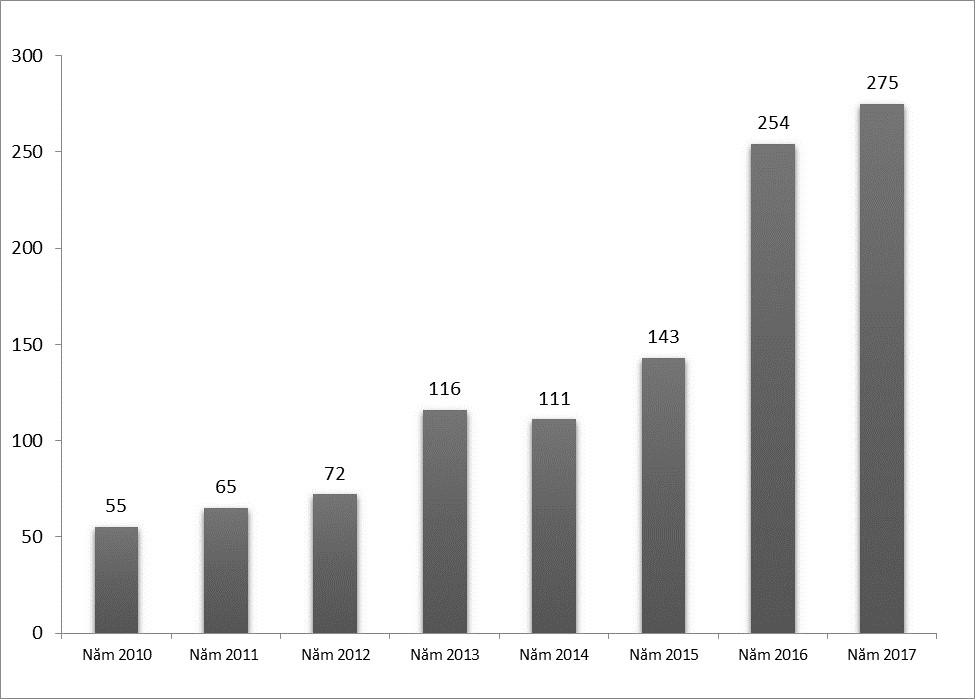 Số lượng báo cáo ADR từ năm 2010 đến năm 2017