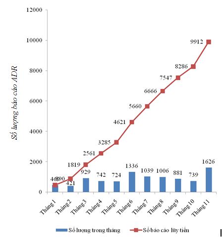 Tổng số báo cáo ADR Trung tâm DI & ADR Quốc gia và Trung tâm DI&ADR khu vực TP Hồ Chí Minh đã tiếp nhận và xử lý tính đến ngày 15/11/2016 là 9912 báo cáo (đạt 108,1 báo cáo/1 triệu dân). Tổng số báo cáo nghiêm trọng 3869 (chiếm 39% tổng số báo cáo ghi nhận được trong năm 2016).
